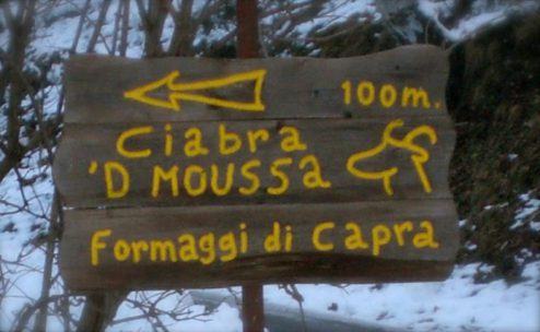 Oltrepassato un guado si arriva alla Borgata Palet da dove si diparte una strada carrabile non asfaltata segnalata con un cartello di legno “Formaggi di Capra”.